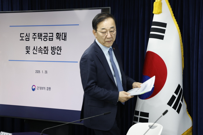 | 김윤덕 국토교통부 장관이 29일 정부서울청사에서 열린 도심 주택공급 확대 및 신속화 방안 브리핑에 참석하고 있다. / 사진 : 안윤수 기자 ays77@ |