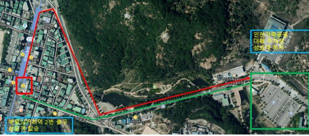 외부순환 노선은 인천지하철 부평삼거리역 2번 출구 → 인천가족공원 대형주차장 이며