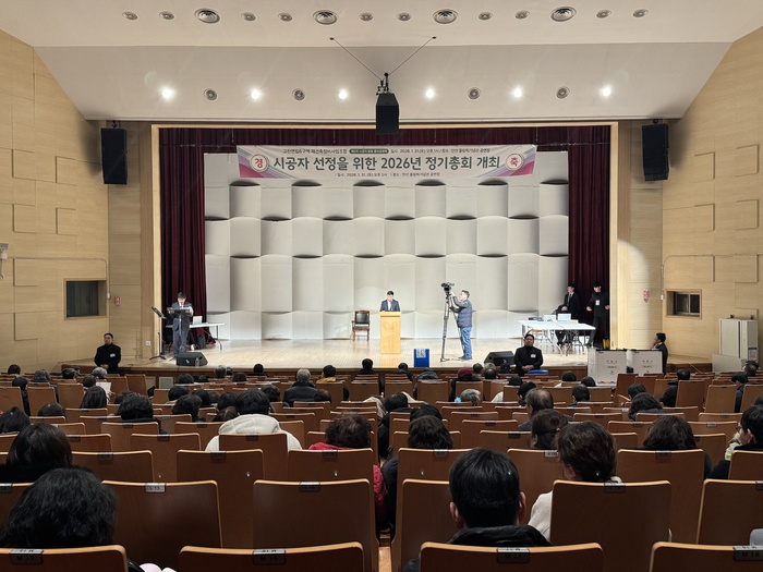 | 지난달 31일 경기 안산 올림픽기념관에서 고잔연립6구역 재건축 정비사업 시공사 선정총회가 진행되고 있다. /사진:이종무 기자 |