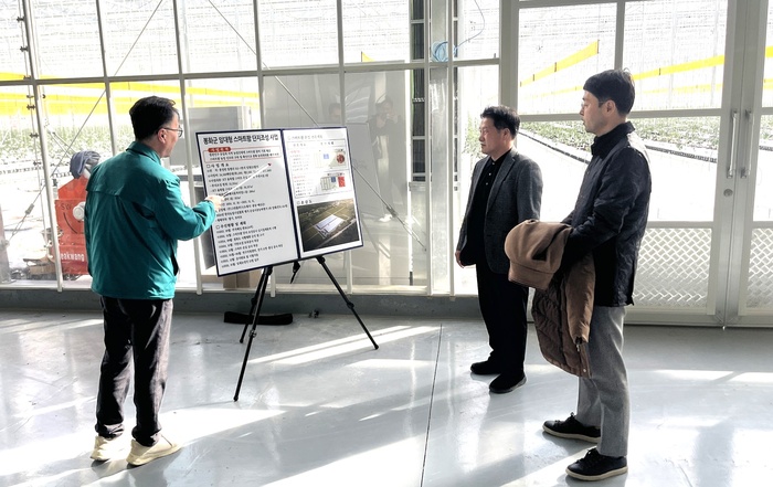 이번 방문에서 정 과장은 스마트팜 에너지 관리 시스템을 비롯한 주요 시설을 둘러보며 안정적인 운영 상황을 확인했으며, 특히 토마토를 재배 중인 입주 농업인들의 생산 현황과 애로사항을 청취했다.