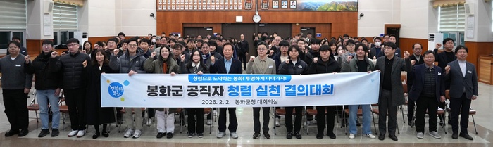 봉화군은 2일 군청 대회의실에서 직원 300여 명이 참석한 가운데 ‘2026년 봉화군 공무원 청렴 실천 결의대회’를 열고, 청렴 행정 실천 의지를 다졌다.
