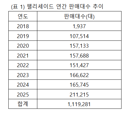 [대한경제=강주현 기자] ‘북미 올해의 차’를 수상한 현대차 팰리세이드가 글로벌 시장에서 연간 최다 판매 기록을 새로 썼다. 하이브리드 모델이 추가된 2세대 팰리세이드의 신차 효과가 주효했다.