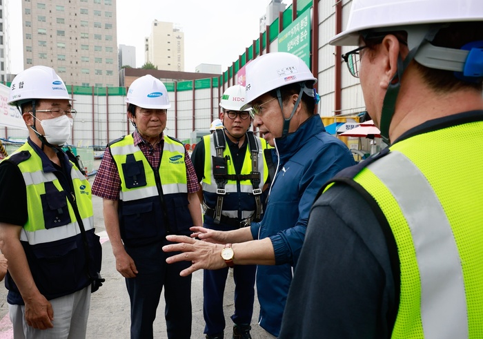 | 진주아파트 정비사업 현장을 찾은 서강석 송파구청장 / 사진 : 송파구 제공 |