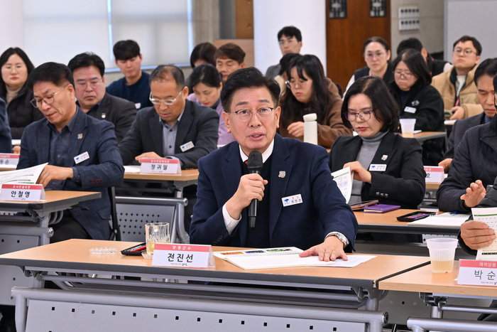 | 전진선 군수가 '제3차 기후위기 적응대책 수립 용역 최종보고회’에 참석해 향후 적응대책을 점검하고 있다. / 사진 : 양평군 제공 |