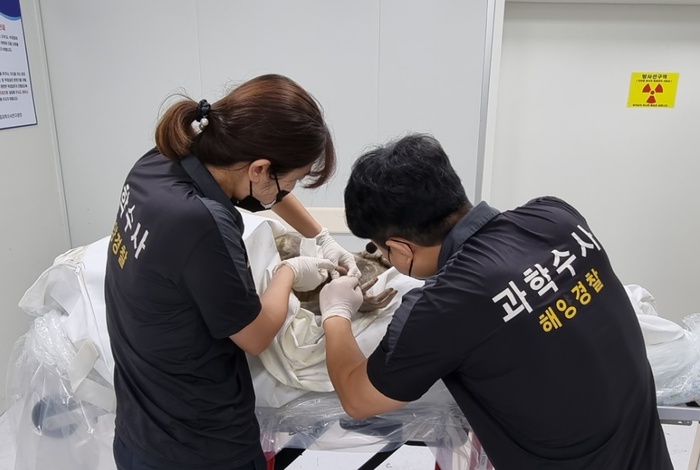| 고도부패시신에 대한 신원확인 모습 |