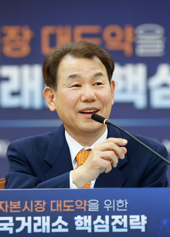 | 정은보 한국거래소 이사장이 5일 오후 서울 여의도 한국거래소 사옥에서 열린 신년 기자간담회에서 질의응답을 하고 있다. / 사진=대한경제 |