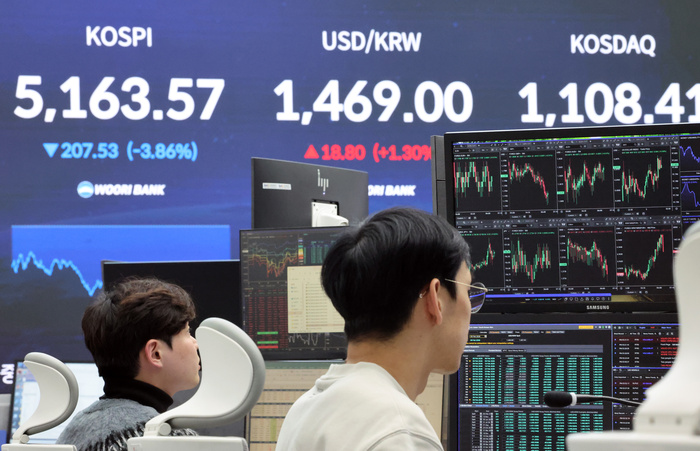 5일 코스피 지수는 전 거래일보다 207.53포인트(pㆍ3.86%) 하락한 5163.57에 거래를 마쳤다.