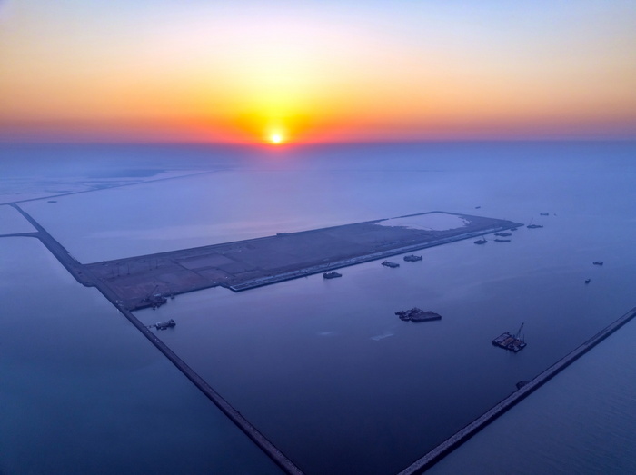 | 대우건설이 시공하고 있는 이라크 알포 신항만 컨테이너터미널 안벽공사 현장 전경. 사진 / 대우건설 제공 |