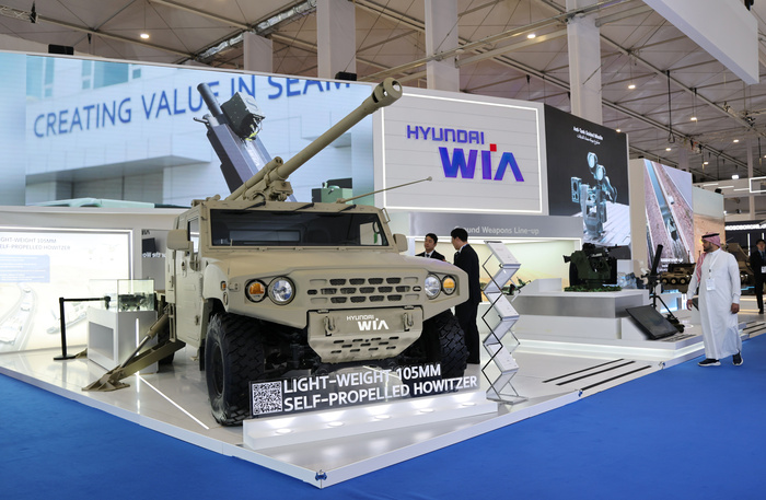 현대위아가 사우디아라비아 리야드에서 8일 개막한 중동 최대 방위산업 전시회 ‘WDS 2026’에 처음으로 단독 부스를 마련해 참가했다. 올해 전시회에는 45개국 750여개 업체가 참가했다. 현대위아는 소형전술차량에 105㎜ 곡사포를 탑재한 ‘경량화 105㎜ 자주포’를 실물로 공개했다. 기존 차륜형 자주포 대비 절반 이상 가벼워 기동성이 뛰어나며 최대 사거리 18㎞에 헬기를 통한 공중 수송도 가능하다. 차량탑재형 81㎜ 박격포 목업과 AI 기반 자동추적 알고리즘을 탑재한 원격사격통제체계(RCWS), 차량탑재형 대드론 통합방어체계(ADS)도 함께 선보였다.