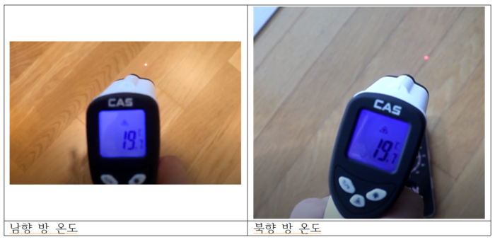 또한, 동일면적에서 평균 열에너지 비용은 5만6000원인데 해당 세대는 1만6000원으로 크게 낮았다. 기자가 남향과 북향 방의 온도를 재어보았더니 북향 방과 남향 방의 온도가 19.7℃로 동일했다.