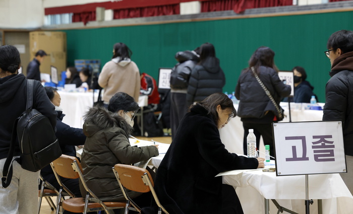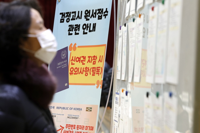 2026년도 제1회 초·중·고졸 검정고시를 앞두고 9일 서울 동작구 서울공업고등학교 체육관에서 검정고시 응시생들이 원서 작성 및 접수하고 있다. 서울시교육청은 오는 4월 4일 2026년도 제1회 초·중·고졸 검정고시를 시행한다.