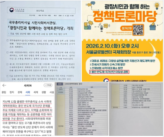 지난해 12월 출범한 국무총리 자문기구 '사회대개혁위원회'가 용인 반도체 국가산단 문제를 주요 의제로 다루고 지역 순회 타운홀 미팅 방식의 공론화를 추진할 것이라는 보도가 이미 나온 바 있기 때문이다.