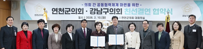 김미경 연천군의회 의장은 “이번 강남구의회와의 친선결연은 상호 신뢰를 바탕으로 협력 관계를 더욱 공고히 하는 뜻깊은 자리”라며 “지속적인 교류와 소통을 통해 지방자치 발전과 주민 삶의 질 향상에 기여하겠다”고 밝혔다.