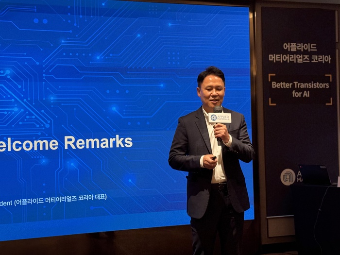 | 12일 서울 조선팰리스 강남에서 어플라이드머티어리얼즈 기자 간담회가 열린 가운데 박광선 어플라이드코리아 대표가 인사말을 하고 있다. /사진: 이계풍 기자 |