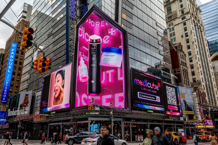 | 미국 타임스스퀘어 '메디큐브' 옥외 광고 화면./사진=에이피알 |