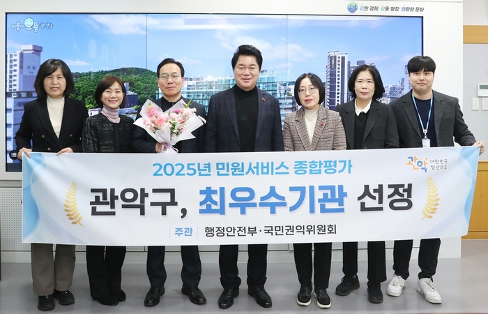[대한경제=이승윤 기자] 서울 관악구(구청장 박준희)는 행정안전부와 국민권익위원회가 공동 주관한 ‘2025년 민원서비스 종합평가’에서 최우수 기관으로 선정됐다고 12일 밝혔다.