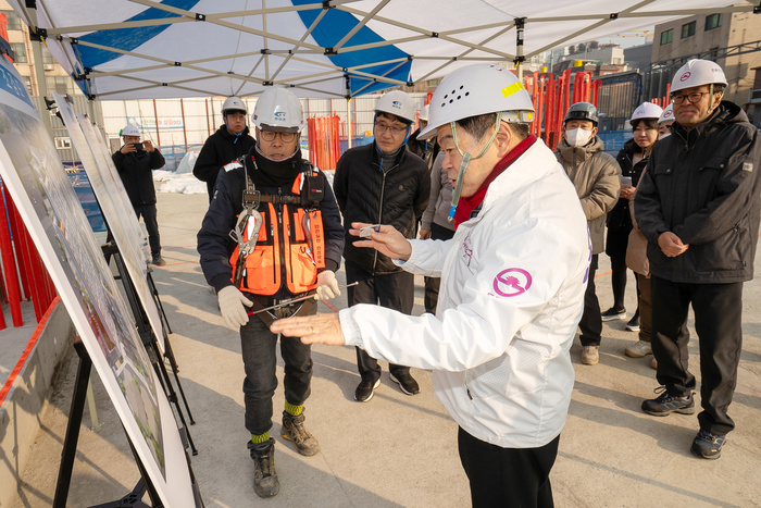 구(舊) 청량리정신병원 부지에 들어서는 시립동대문노인종합복지관 건설현장에서 이 구청장은 공정 진행과 안전관리 실태를 확인했다. 토질ㆍ기초 기술사와 건축사 등 외부 전문가도 동행했다. 굴착공사장을 집중 점검하며 가설 구조물 안전성, 화재 예방 관리, 동절기 작업 환경, 안전 장비 착용 여부를 하나하나 살폈다.