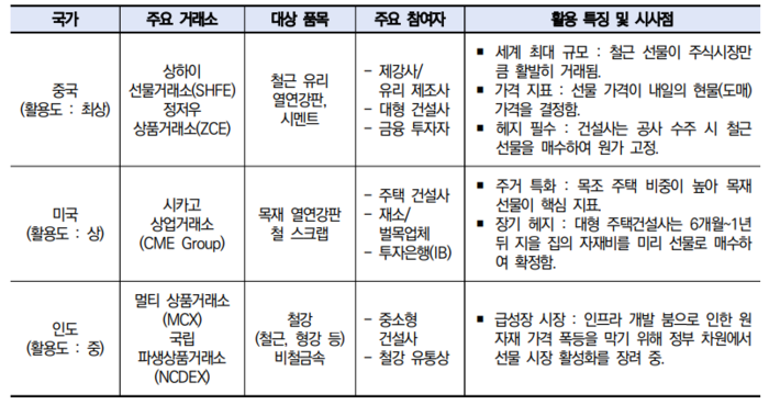 | 해외의 건설자재 선물시장 활용 사례 |