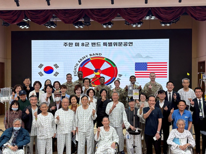 | 지난 12일 서울 강동구 중앙보훈병원에서 한국토지주택공사(LH) 임직원들이 설 맞이 사회공헌 활동을 진행하고 국가유공자 환우, 주한 미8군 군악대 등과 기념 촬영을 하고 있다. /사진:한국토지주택공사 제공 |