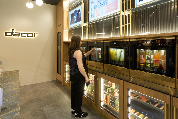 삼성전자의 럭셔리 빌트인 브랜드 ‘데이코(Dacor)’ 라인업도 눈길을 끌었다. 최고급 메탈로 내부를 마감한 1도어 컬럼형 냉장ㆍ냉동고를 비롯해 와인 셀러, 와인 디스펜서 등을 선보였다. 특히 굴곡진 벽면 속에 컬럼 냉장고가 완전히 숨겨지는 전시 연출을 통해 가전과 인테리어의 경계를 허무는 데이코의 디자인 철학을 강조했다. 데이코 와인 디스펜서는 아르곤 가스 기술로 개봉한 와인의 맛과 향을 최대 60일간 유지해주는 제품이다.