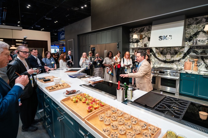 | 관람객이 미국 플로리다주 올란도에서 열린 북미 최대 규모의 주방∙욕실 전시회 ‘KBIS 2026(The Kitchen & Bath Industry Show 2026)’에서 ‘비스포크 AI 가전’과 럭셔리 빌트인 ‘데이코(Dacor)’ 라인업을 구경하고 있다./사진: 삼성전자 제공 |