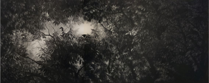 전시 제목을 ‘어둠과 빛의 이중주’로 붙여 복잡한 사회 관계망 속에서 자기 스스로 빛을 발아하는 현상을 예술적 감성으로 승화했다. 수묵을 재료로 빛이 흘러나오거나 비집고 새어나오는 사실성을 시각화한 게 이채롭다.