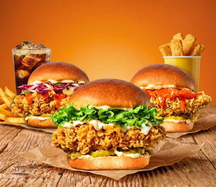 | bhc 치킨 버거 3종 메뉴./사진=다이닝브랜즈그룹 |