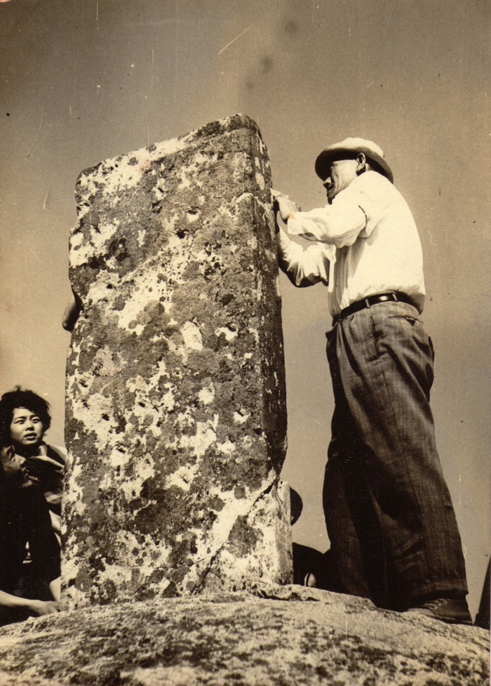 1961년 북한산 진흥왕 순수비를 탁본하는 최남주. 답사 현장에서 서울지역 대학교 사학과 학생들에게 신라 금석문의 중요성을 강의하였다. /사진: 필자 제공