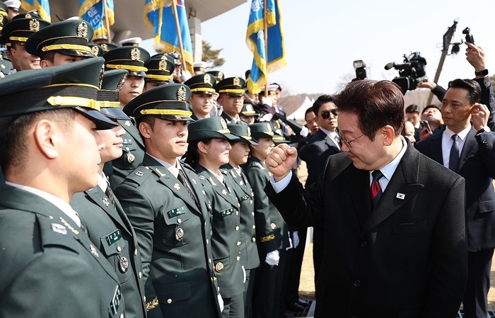 앞서 이 대통령은 이날 오전 충남 계룡대에서 열린 육ㆍ해ㆍ공군 사관학교 통합임관식에 참석해 “앞으로는 육ㆍ해ㆍ공군 사관학교를 통합해 미래 전장을 주도할 국방 인재를 더욱 체계적으로 양성하겠다”고 밝혔다.