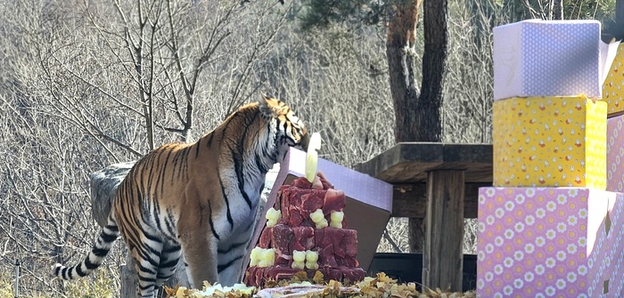 [대한경제=류효환 기자] 21일 경북 봉화에 위치한 국립백두대간수목원에서 태범이와 무궁이가 여섯 번째 생일을 맞았다. 이날 행사에는 전국 각지에서 모여든 태범이·무궁이 팬카페 회원들과 가족을 동반한 어린이들이 함께해 의미를 더했다.
