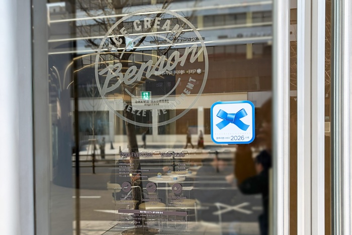 | 벤슨 압구정점에 붙은 블루리본 표시. /사진: 한화갤러리아 제공 |