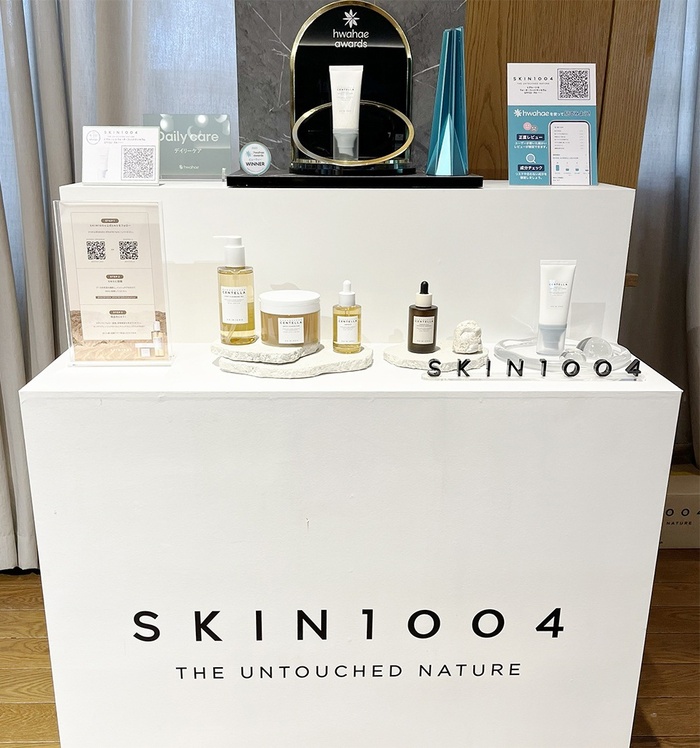 스킨1004는 팝업을 통해 지난 2024년 화해 뷰티 어워드 클렌징 오일 부문 1위를 차지한 ‘마다가스카르 센텔라 라이트 클렌징 오일’과 2023년 선크림ㆍ로션 부문 수상 제품인 ‘마다가스카르 센텔라 히알루-시카 워터핏 선세럼’, 클렌징 폼 부문 수상 제품인 ‘마다가스카르 센텔라 앰플 폼’ 등을 선보였다.