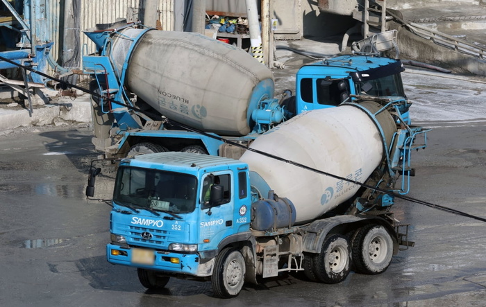 | 레미콘 공장에서 믹서트럭이 분주하게 움직이는 모습. /사진:연합 |