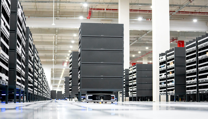 | 쿠팡 물류센터 평균 2분 안에 수백 개의 상품을 집품 작업자의 작업대로 운반하는 AGV(Automated Guided Vehicle) 로봇이 작동 중이다. /사진: 쿠팡 제공 |
