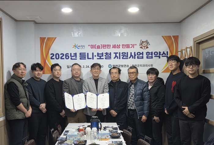 합천군은 합천군 치과의사회(회장 최낙은)와 지난 24일 2026년 틀니·보철 지원사업 및 구강보건사업 활성화를 위한 업무협약을 체결했다고 26일 전했다.