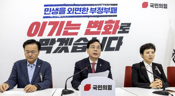 | 국민의힘 송언석 원내대표가 27일 국회에서 열린 기자간담회에서 현안 관련 발언을 하고 있다. / 사진: 연합뉴스 |