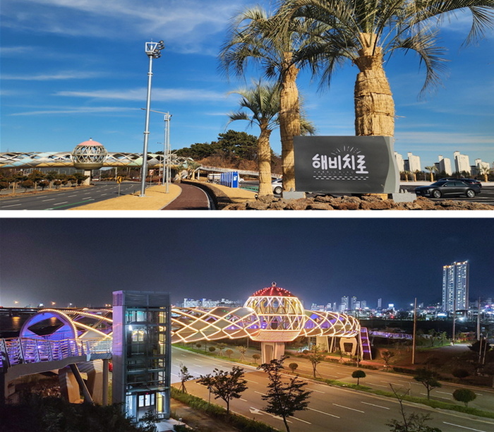 | 광양 '해비치로 달빛해변' 낮과 밤 전경. / 사진: 광양시 제공 |