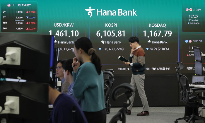 이날 코스피 지수는 전 거래일 대비 78.98p(1.26%) 내린 6165.15로 출발해 약세를 잇고 있다.