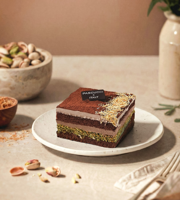 파스쿠찌가 ‘카사타 두바이 케이크’를 출시했다. 초코 시트와 초코 크림에 구운 카다이프·피스타치오 페이스트를 더한 중동 스타일 케이크다.