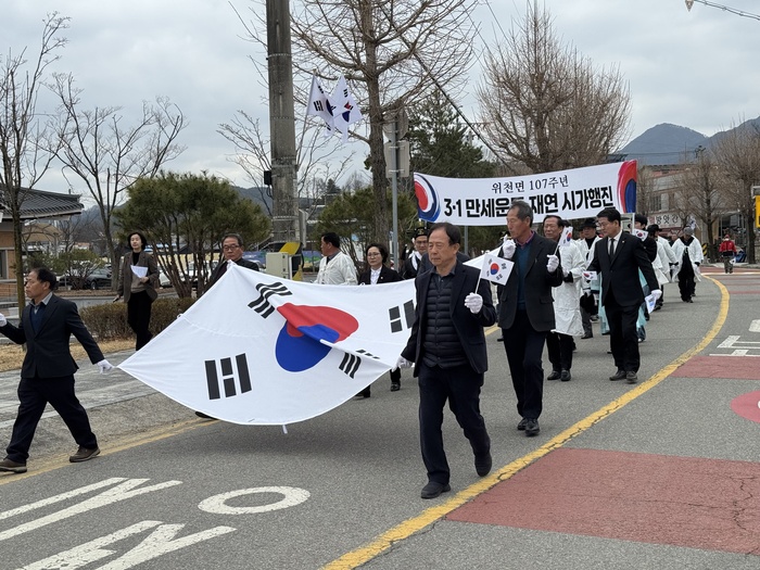 기념식 후 참석자들은 1919년 4월 8일 위천 장터에서 일어났던 만세운동을 기리기 위해 태극기를 손에 들고 ‘대한민국 만세’를 힘차게 외치며 어울림마당에서 3‧1만세운동 발상지인 사마로터리까지 행진했다. 거리마다 울려 퍼진 만세삼창은 그날의 뜨거운 항일 의지를 오늘에 되살리는 상징적 장면이 됐다.