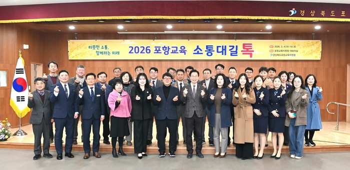 [대한경제=류효환 기자] 경상북도교육청은 4일 포항교육지원청을 시작으로 4월 10일까지 도내 34개 직속기관 및 교육지원청을 순회하는 ‘2026 주요 업무 보고 및 소통대길 톡’을 운영한다고 밝혔다.