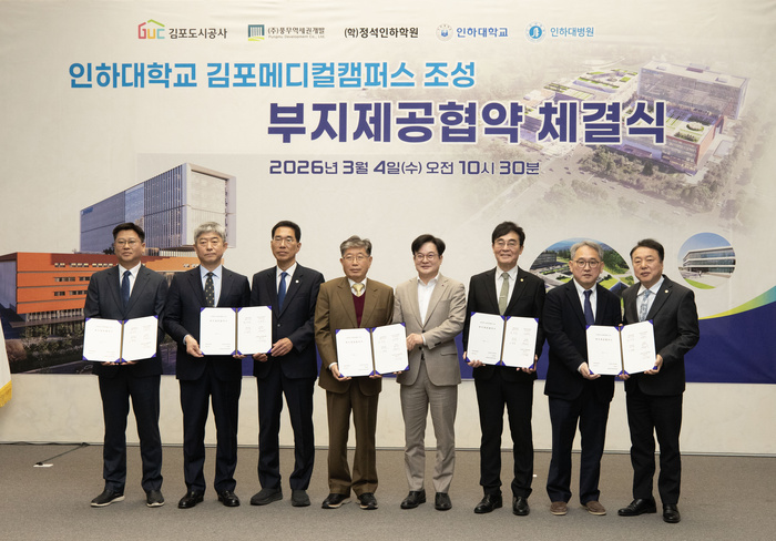 [대한경제=박흥서 기자]인하대학교(총장 조명우)가 4일 김포시 사우동 풍무역세권 도시개발사업 내 학교 용지에 김포메디컬캠퍼스 조성사업을 위한 부지제공 협약을 체결하며 사업의 본격적인 출발을 알렸다.