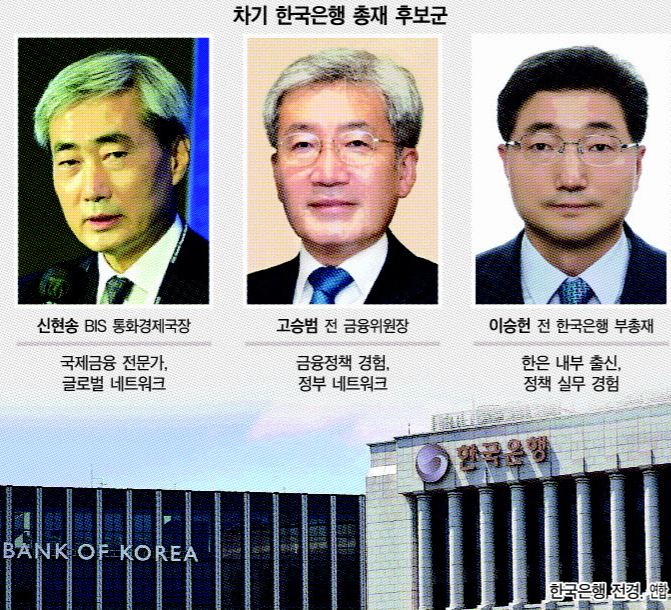 다만 후보군은 조금씩 윤곽을 드러내고 있다. 고승범 전 금융위원장, 신현송 국제결제은행(BIS) 통화경제국장, 이승헌 전 한은 부총재 등이 하마평에 올랐다.