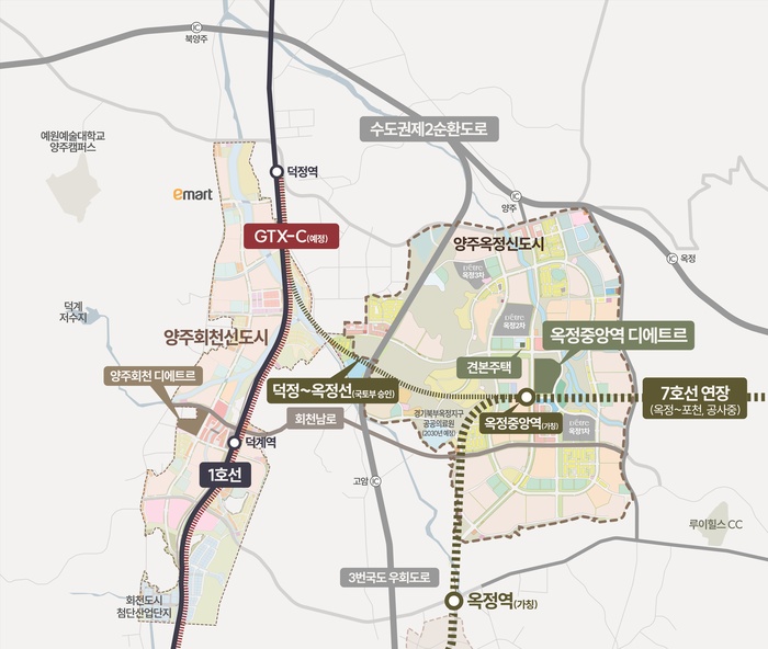 ‘옥정 중앙역 디에트르’는 2030년 인근에 옥정중앙역(가칭)이 개통할 예정이다. 교통망 확충에 따라 초역세권 단지로 거듭나는 셈이다. 커뮤니티 시설로는 6레인 규모의 실내수영장을 비롯해 사우나, 피트니스센터, 골프연습장, 키즈플레이존 등이 설계에 반영됐다. 아울러 대형 스크린이 설치된 미디어 시청 공간과 단지 내 대형 상업시설이 함께 조성될 계획이다.