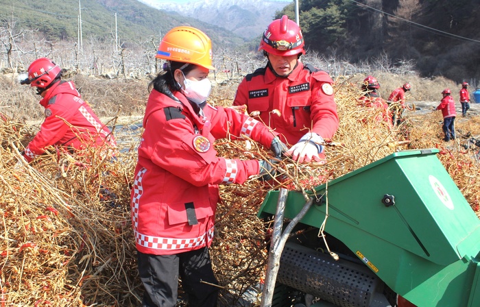 [대한경제=류효환 기자] 산림청 영주국유림관리소는 봄철 산불 예방을 위해 영농부산물 일제 파쇄 주간(3월 1일~7일)을 운영하고, 지난 7일 봉화군 취약농가를 대상으로 ‘찾아가는 영농부산물 수거·파쇄 지원’을 실시했다고 밝혔다.