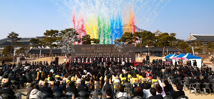 행사장에는 ‘함께한 10년의 동행, 더 큰 100년의 미래’라는 슬로건이 게시돼 경북도청이 앞으로 경북의 미래를 설계하는 중심 역할을 해 나가겠다는 의지를 담았다.