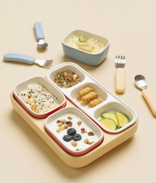 이번 제품은 실리콘 식판의 안정성과 도자기 식기의 위생·세척 편의성을 동시에 구현한 점이 차별화 요소다. 기존에는 실리콘 식판과 도자기 식기가 각각의 장단점을 가지고 사용되던 반면, 이번 모듈 식판은 두 소재의 장점을 결합해 보다 실용적인 식사 환경을 제안한다.