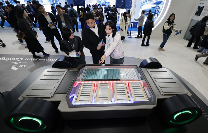 SK온 부스에서도 로봇 적용 사례가 관람객들의 관심을 끌었다. SK온은 하이니켈 삼원계 배터리가 탑재된 현대위아의 물류 로봇(AMR)을 전시하며 산업 현장에서의 활용 가능성을 강조했다. 실제 해당 로봇은 현대자동차그룹 메타플랜트 아메리카(HMGMA) 등 생산 거점에 도입돼 물류 자동화에 활용되고 있다.