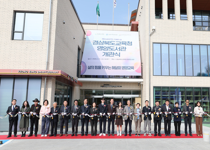[대한경제=우종두 기자] 영양군은 경상북도영양교육지원청 주관으로 지난 11일 영양도서관 앞마당에서 지역내 문화‧교육 인프라 격차 해소와 군민 평생학습의 핵심 거점 역할을 할 '경상북도교육청 영양도서관' 의 신축 ‧ 이전 개관식을 개최했다.