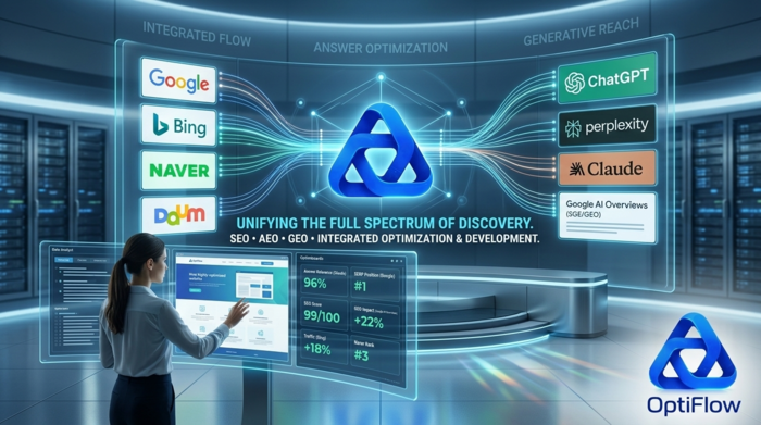 AI 검색 최적화 전문기업 옵티플로우(OptiFlow)는 이에 대응해 AEO·GEO·SEO 통합 최적화 서비스를 전개하고 있다.